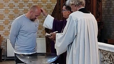 Tijdens de eucharistie viering ter gedenking van de doop van de Heer in de Jordaan ontving Thijs Dijkhuizen het sacrament van de doop. >